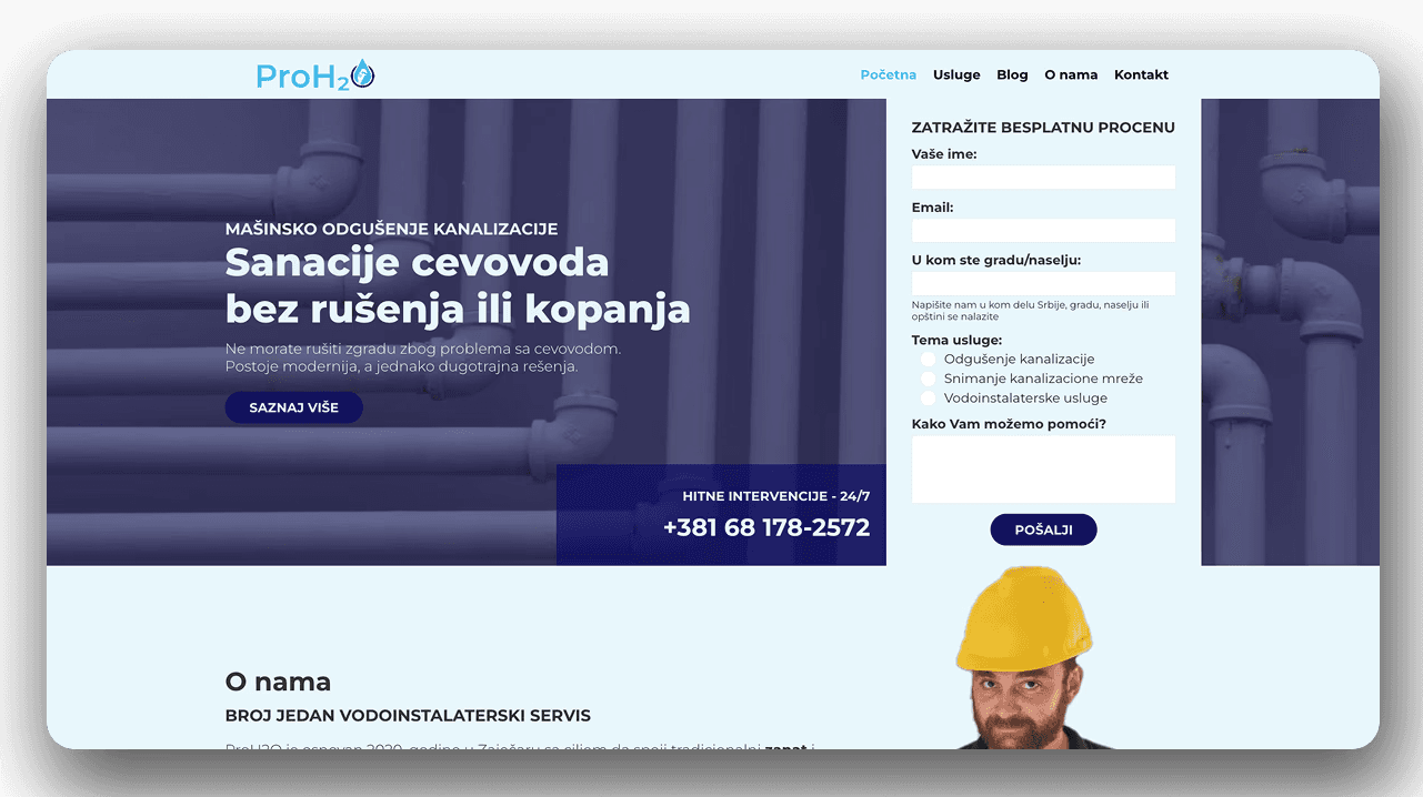 ProH2O is a plumbing company specializing in unclogging and maintaining pipe installations for large-scale clients (gas stations, hotels, residential buildings), as well as plumbing services for individual homes.